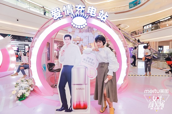 在“玩美星球”5大主题馆中,由丸美打造的“爱情充电站”是现场主角。