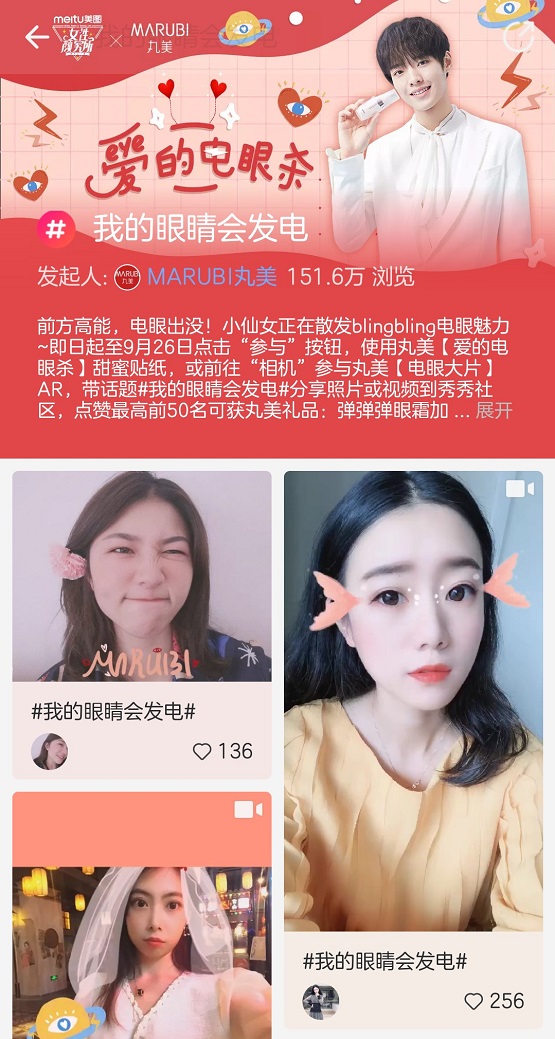 AR特效作为美图的王牌产品,多年来为众多女性用户带去了关于美的想象力和创造力,也给品牌营销提供了更为友好的流量入口。除此之外,美图还采用测试类H5、美图社区话题、PR全媒体矩阵式报道等多种线上传播方式,持续为丸美眼霜节赋能。