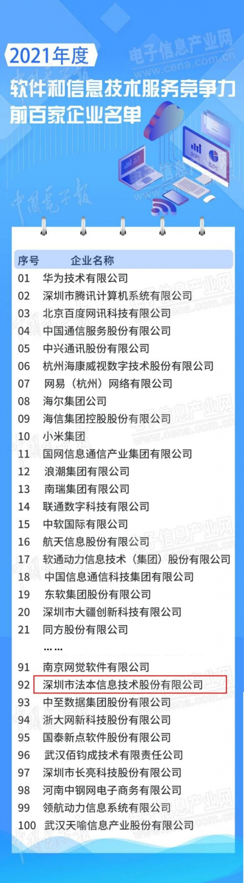 法本信息上榜2021年度中国软件和信息技术服务竞争力百强企业