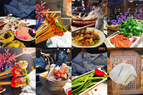 不起眼的小巷子,一颗桃花树和一个“洪七公吃串串”牌匾,感觉一进门就像穿越到金庸先生笔下的桃花岛。讲述了黄药师、桃花岛、洪七公吃串串来源的东邪包间,被葫芦珠帘半遮半掩的3D墙绘包间,坐落于桃花树下和雪山之间的大厅......如果不是再三确定是一家串串店,拍出来的照片都快赶上影视剧造景片场了,真的超级适合爱拍照和凹造型的各种好吃嘴!