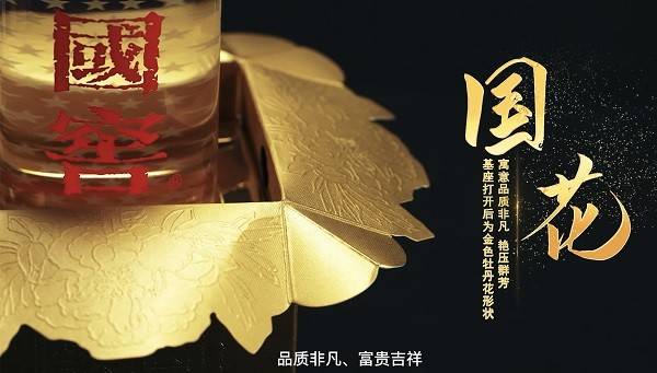值得一提的是,国窖1573外盒的基座打开后,犹如一朵金色牡丹璀璨绽放,“国花”配“国窖”,喝酒的仪式感瞬间拉满。