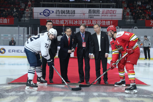 2019年2月20日,由中国国际文化传播中心主管的昆仑鸿星万科龙队,坐镇首钢冰球馆,迎战远道而来的符拉迪沃斯托克海军上将队。比赛中中方球员凭借出色表现收获颇丰,队长叶劲光拿到1球1助,单赛季21球15助攻破队史单赛季进球纪录;英如镝收获本土球员第一球;骆嘉拿到2次助攻;外援帕罗拉2球1助拿到3分,沃尔斯基1球1助,肖尔也收获1粒进球,最终万科龙队在回归北京的首场比赛中6-3战胜海军上将队。