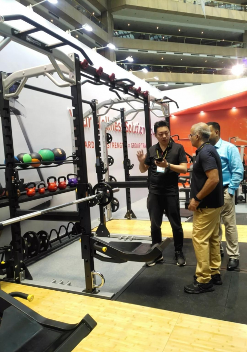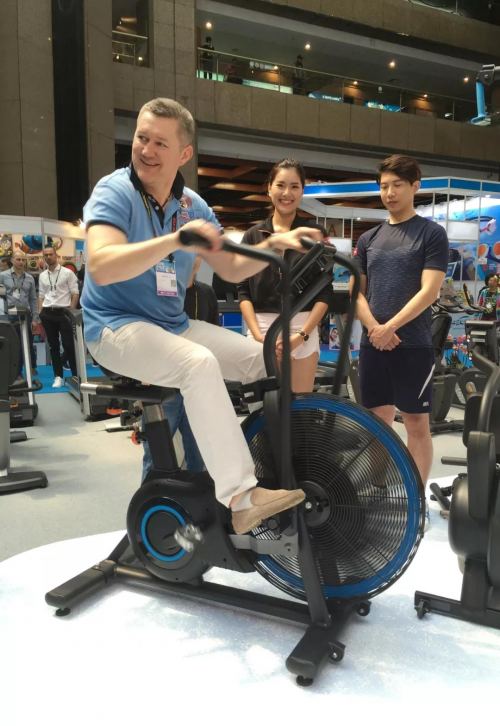 展会第一天,英派斯的展位便迎来一波高潮。来自全球各地的健身器材用户和爱好者,聚集在英派斯展位,参观并体验了英派斯本年度最新研发产品。