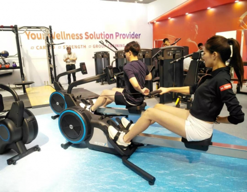 众多展品中最夺目的便是英派斯年度重磅新品——HSR007滑雪划船综合训练机(SKI&ROW)和HB005风扇车(Air Bike),这两者隶属于英派斯HIIT系列产品,是面向HIIT运动需求开发的专业高强度间歇性训练器材。
