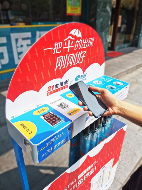 想法有了、地点有了,那么雨伞从哪来呢?为此,21金维他又找寻到目前市面上最大的支付宝漂流伞,来共同为人们的出行便利添一份力。支付宝漂流伞对此也是大力支持,秉承着公益的原则下,经过多轮系统测试,最终把小绿伞的价格定格在了一分钱一次。