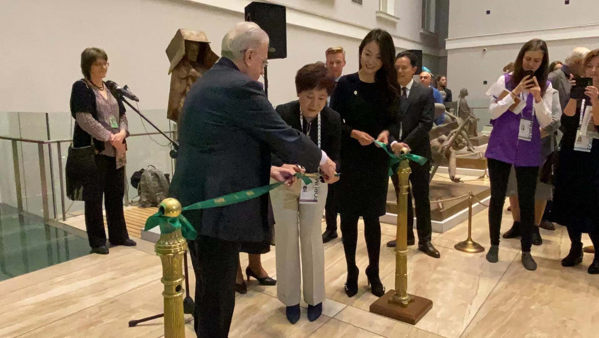 (馆长先生邀请洪英莉女士、安妮女士剪彩环节)