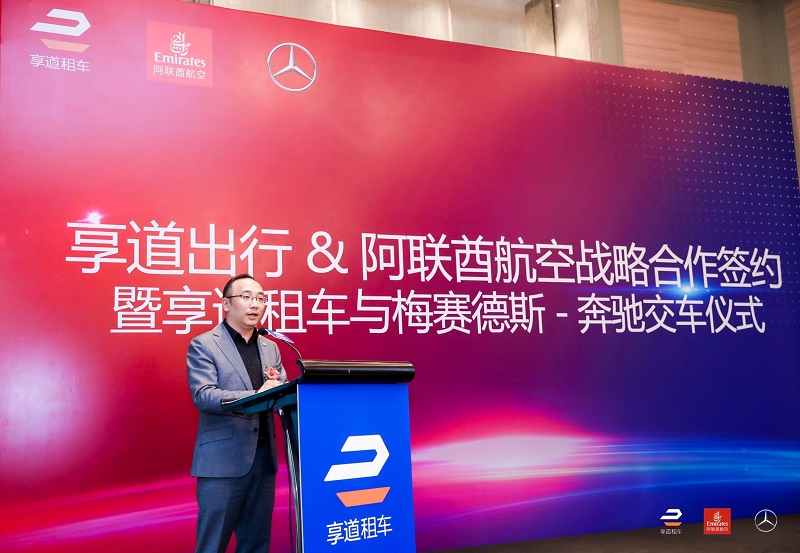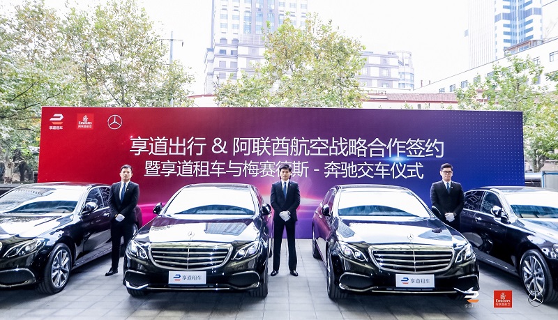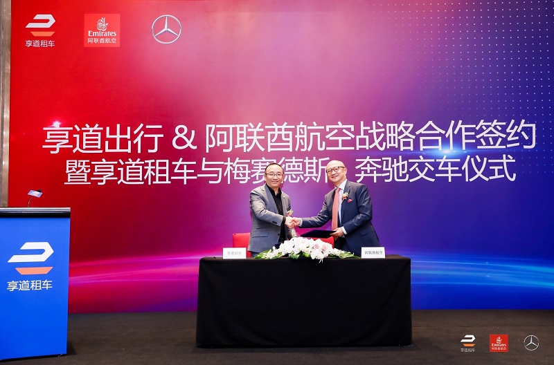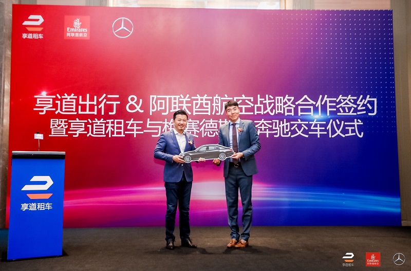 (2019年11月18日,上海)11月18日,时值享道出行试运营一周年之际,享道出行与阿联酋航空战略合作签约仪式暨享道租车与梅赛德斯-奔驰交车仪式在上海静安瑞吉酒店隆重举行。此次签约,是阿联酋航空对享道租车提供的长达11年品质服务的高度认可,在续约的基础上达成战略合作协议,双方将发挥各自在高端商务服务领域的优势,共同提升高端商务人群的品质出行体验。享道租车将为阿联酋航空的头等舱与商务舱乘客提供高端优质、更加便捷的专车接送服务,同时阿联酋航空高端会员的专属权益也会逐渐开放给享道租车的企业级用户。