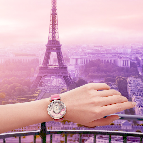 瑞士宝爵表BIJOUMONTRE萃取《环游世界八十天》这个故事的精髓,打造出环游世界系列腕表,纯手工打造的表盘上放上了世界著名景点的地标,加上珍珠贝母、彩色蓝宝石和熠熠生辉的天然钻石的点缀,将不同国度的瑰丽嵌入表中,将各个国度不同的美丽呈现在你眼前,让你从各个细节感受到世界的美丽。