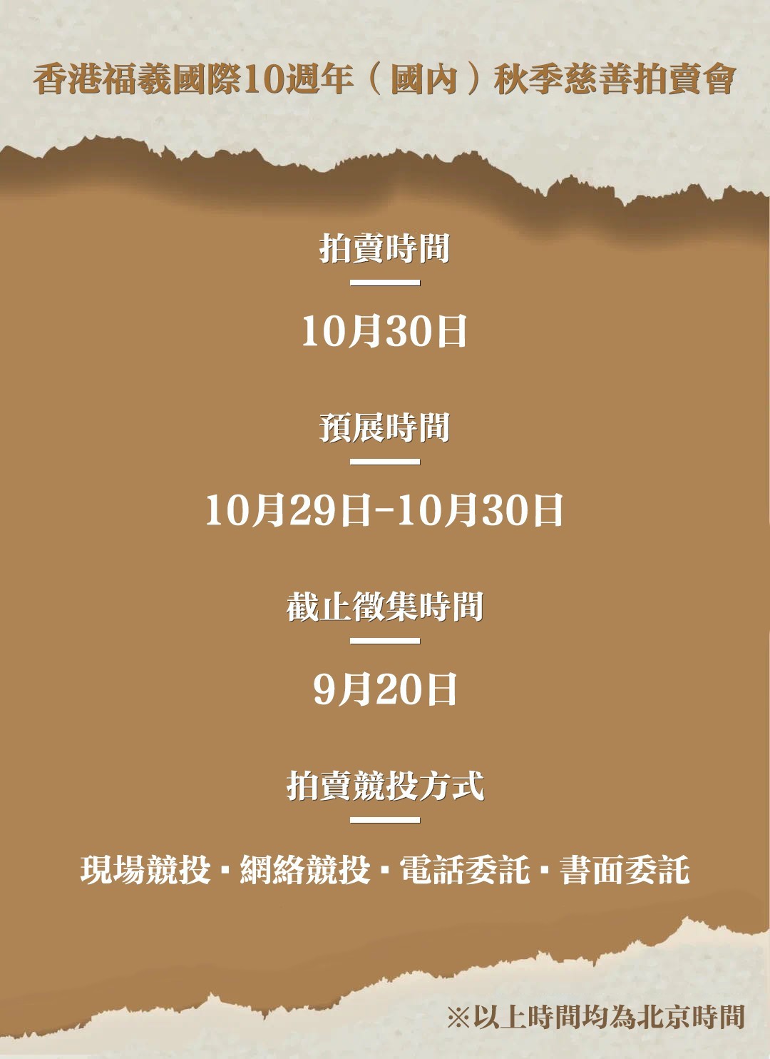 香港福羲國際10周年(國內)秋季慈善拍賣會 徵集拍品