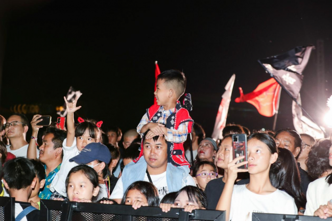 在“佤山之夜”的民族歌舞秀中,整个民族特色专场汇聚了众多音乐人、乐队,呈现出了多种音乐风格的交织碰撞,民谣、说唱、摇滚……本土乐队献上的一首首民族歌曲点燃了游客们的激情。从《加林赛》到《黑珍珠》,从《祝酒歌》到《实在舍不得》,每一首歌曲都将佤族文化与现代音乐创新融合得淋漓尽致,为现场观众带来一场古老与现代交相辉映的奇妙盛宴,让四方游客仿佛穿越时光,走进佤族丛林部落,探索独具魅力的佤族文化瑰宝,享受着一场跨越千年的视觉盛宴。