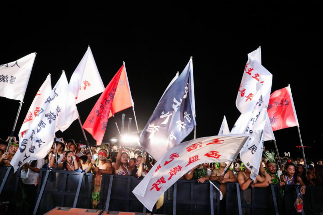 以草地为舞台,以星空为帷幕。夜幕降临,热浪褪去,霓虹闪烁,伴随着绚丽的光束穿透夜空,田玮、巴绕乐团、寨鬼、巴格岱乐团、Kawa乐队等歌手们相继登台亮相,“佤山之夜”民族特色专场正式开演。佤族文化历史悠久,散发着古老神秘的色彩,佤族舞蹈也因其古朴粗犷、刚健豪爽、热情奔放的舞风备受大众喜爱。